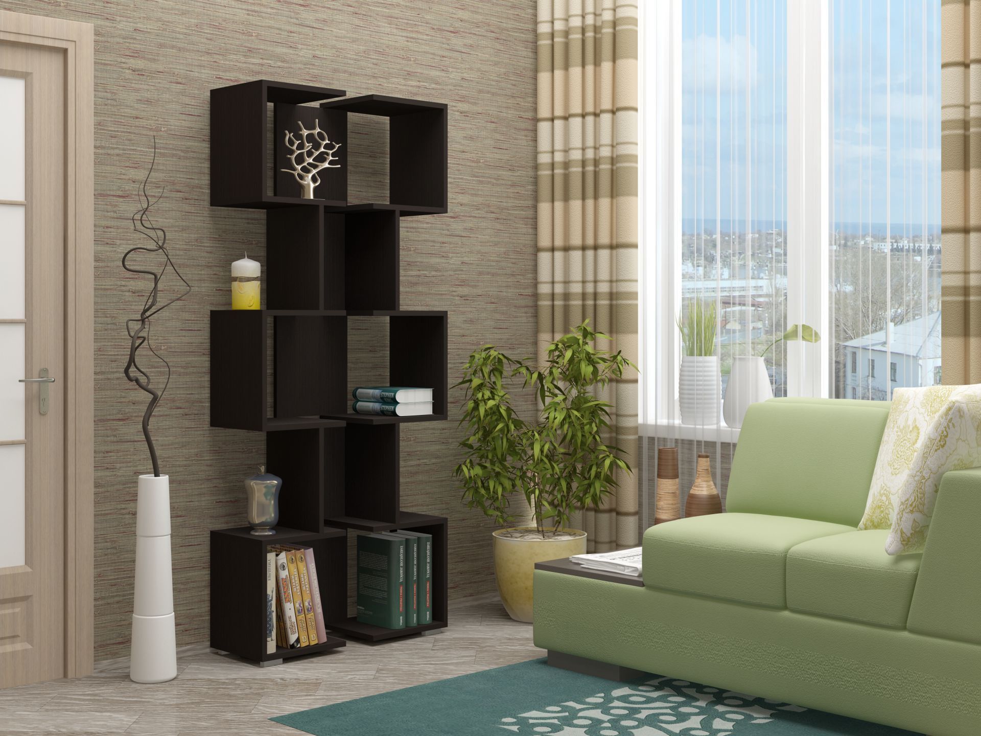 Стеллаж № 44 может служить своеобразным разграничителем рабочей зоны и зоны отдыха, столовой от кухни, он выполняет функцию зонирования пространства, а это очень актуальный тренд в современном интерьере.