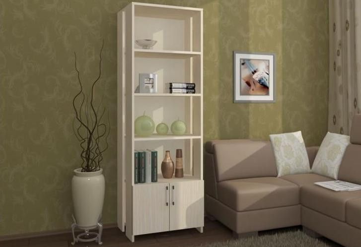 Стеллаж книжный – прекрасное решение для обустройства кабинета или библиотеки, его с успехом можно использовать в гостиной или детской комнате.Благодаря открытым полкам и воздушности, вместительная конструкция вовсе не кажется массивной и громоздкой. В нижней секции с распашными дверцами можно разместить личные вещи, не предназначенные для посторонних глаз. Лаконичность дизайна подчеркивают ручки-рейлинги.